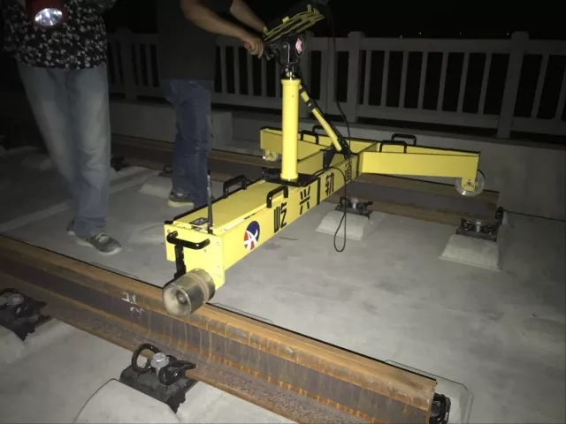 然后再次复测轨距、超高,保证基准规调整到位,之后在进行另一侧钢轨的扣件调整,再次复测轨距、超高,保证现场的调整量满足精调数据方案分析所得到的结果。